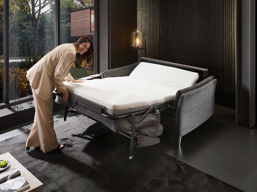 En quelques gestes simples, vous pouvez transformer un canapé confortable en un lieu de sommeil douillet, parfait pour vous ou vos invités. Que ce soit dans des espaces de vie compacts, des chambres d'amis ou des logements de vacances, le canapé-lit MEYLA C, avec ses accoudoirs version standard, séduit toujours par son haut niveau de confort et vous invite à vous détendre et à rêver.